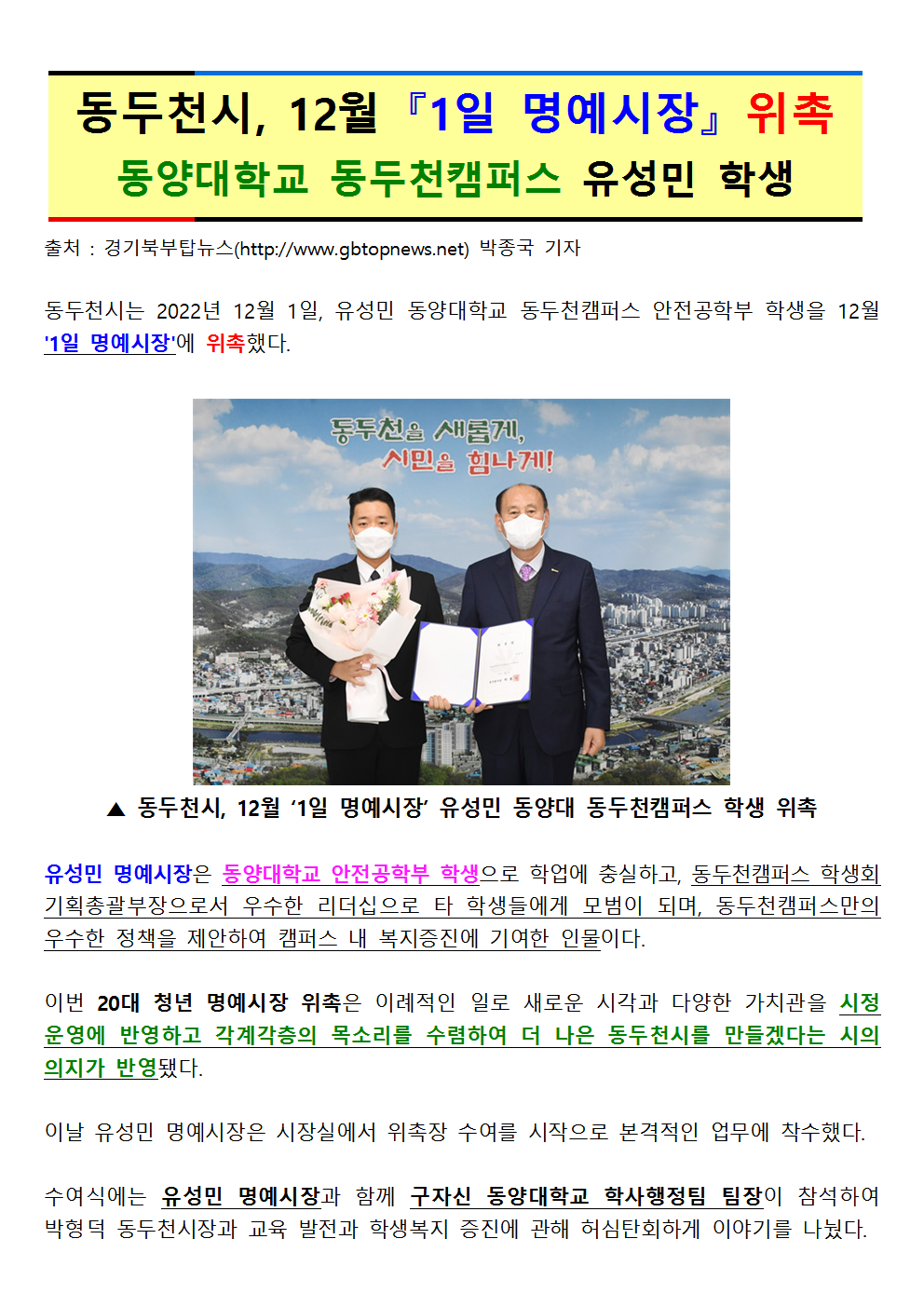 (생생라이브 게시내용) 동두천시 1일 명예시장 위촉 (유성민)001
