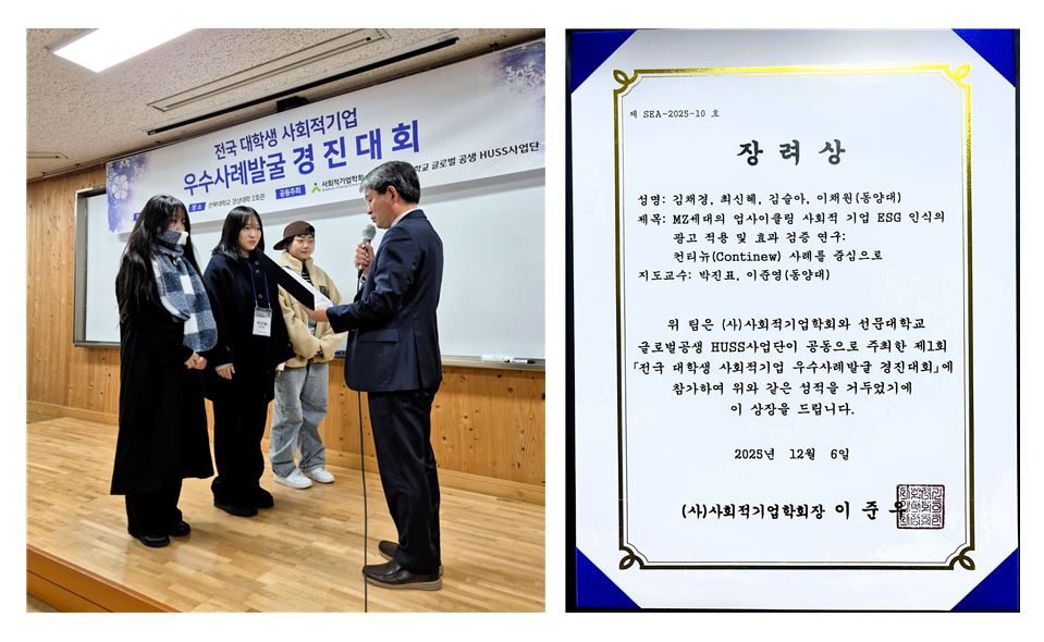 [보도] IT융합경영학과 박진표 교수 지도 제1회 전국 대학생 사회적기업 우수사례발굴 경진대회 입상