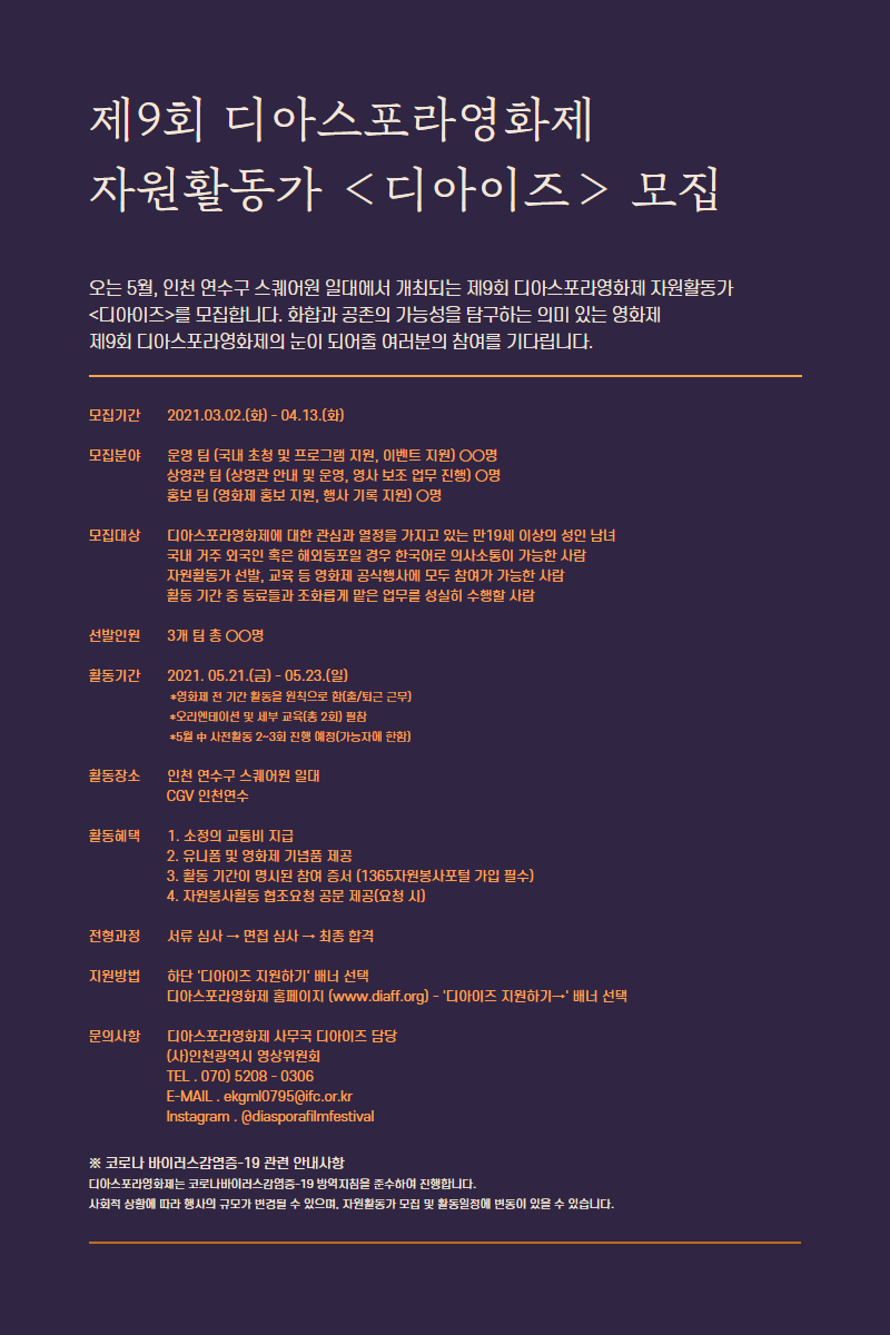제9회 디아스포라영화제 자원활동가 ‘디아이즈’ 모집