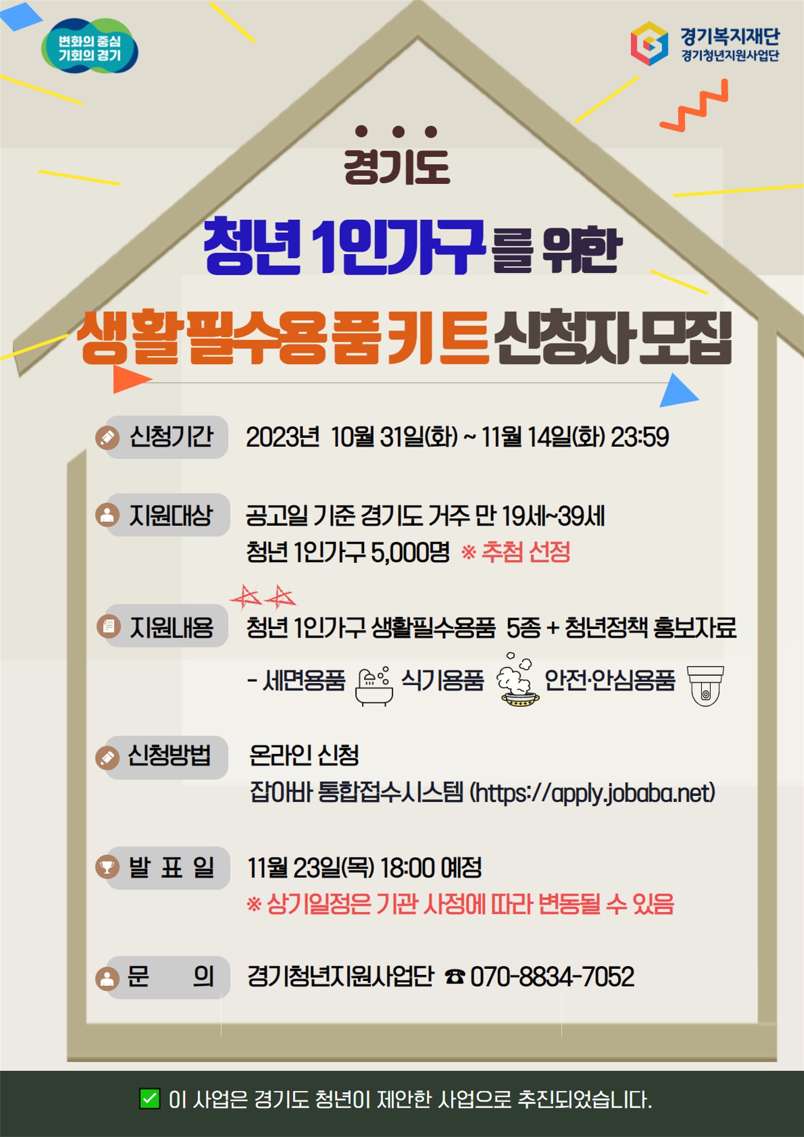 경기도 청년 1인가구 생활필수용품 키트 구성 및 배포 홍보물_1