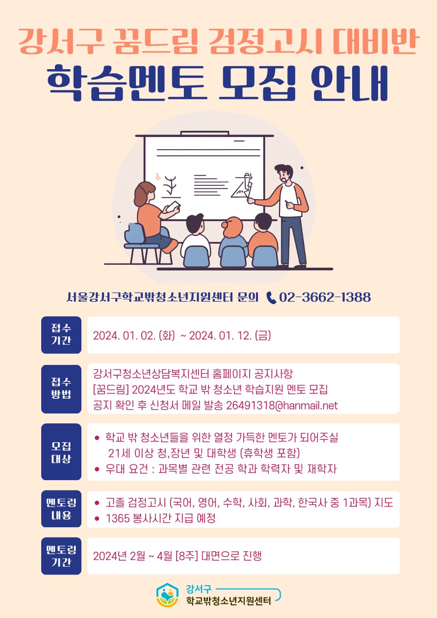붙임 1. 2024년 4월 검정고시 대비반 모집 포스터 1부_1