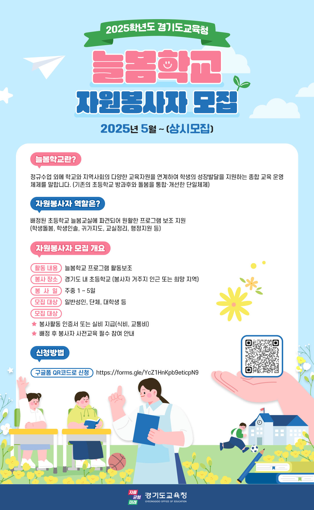 [붙임] 2025학년도 경기도교육청 늘봄학교 자원봉사자 모집_웹포스터