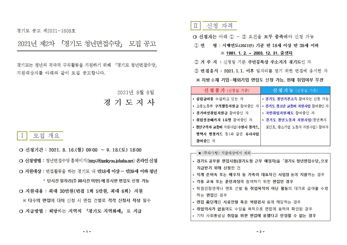 붙임1_2021년 제2차 경기도 청년면접수당 모집 공고001