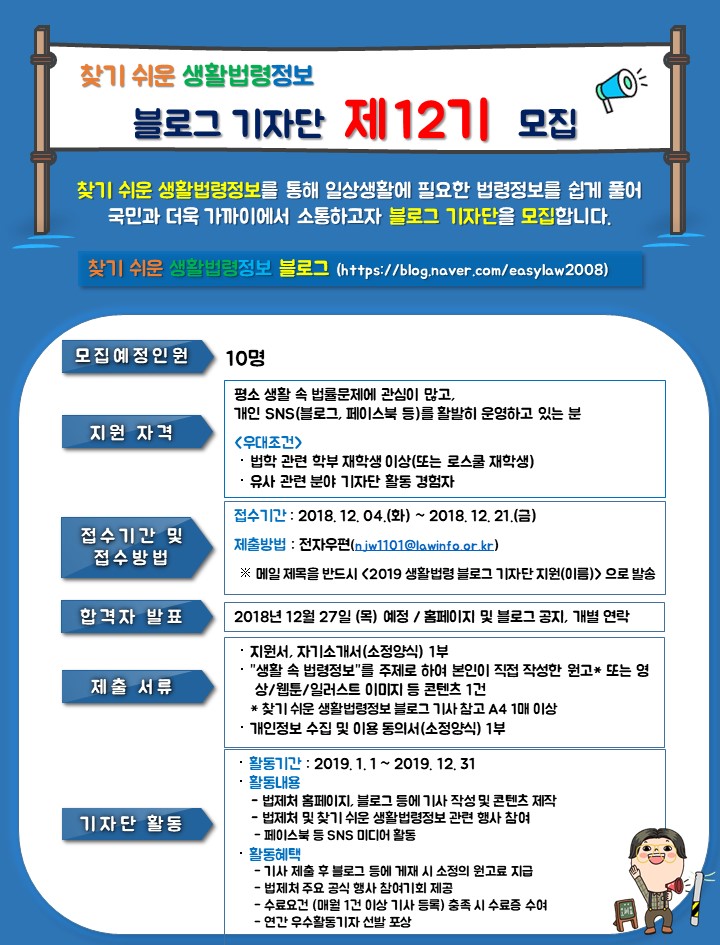 찾기 쉬운 생활법령정보 블로그 기자단 제12기 모집공고 포스터