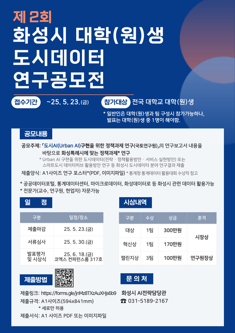 [포스터] 2025년 화성시 대학(원)생 도시데이터 연구공모전
