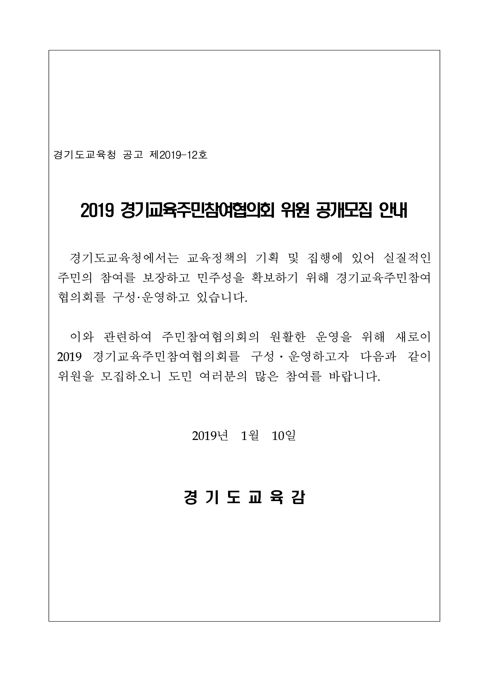 2019년 경기교육주민참여협의회 위원 공개모집 공고문 표지_1