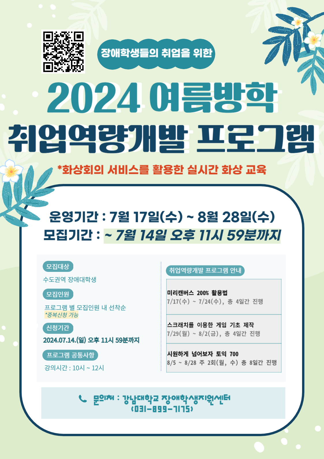 2024 여름방학 취업역량개발 프로그램 안내포스터