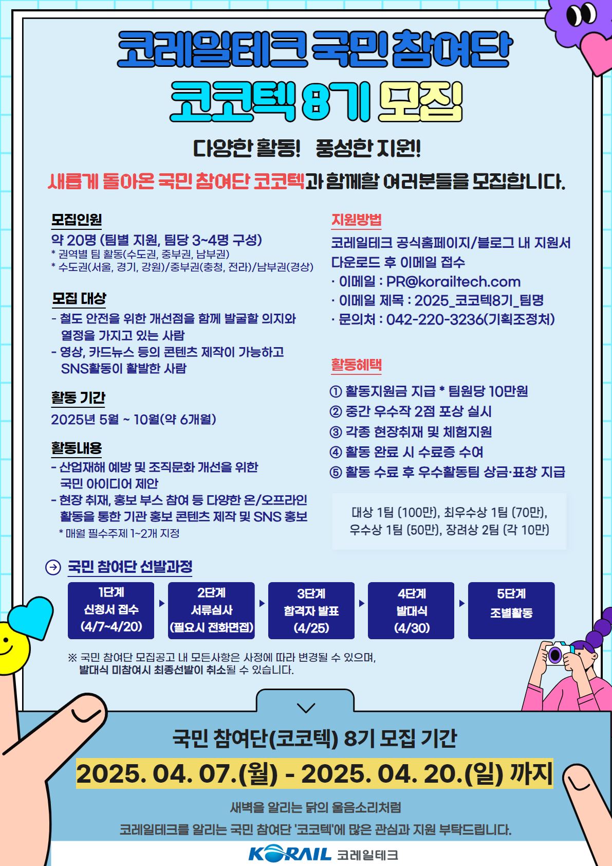2025년도 코레일테크 국민 참여단(코코텍) 8기 모집 포스터