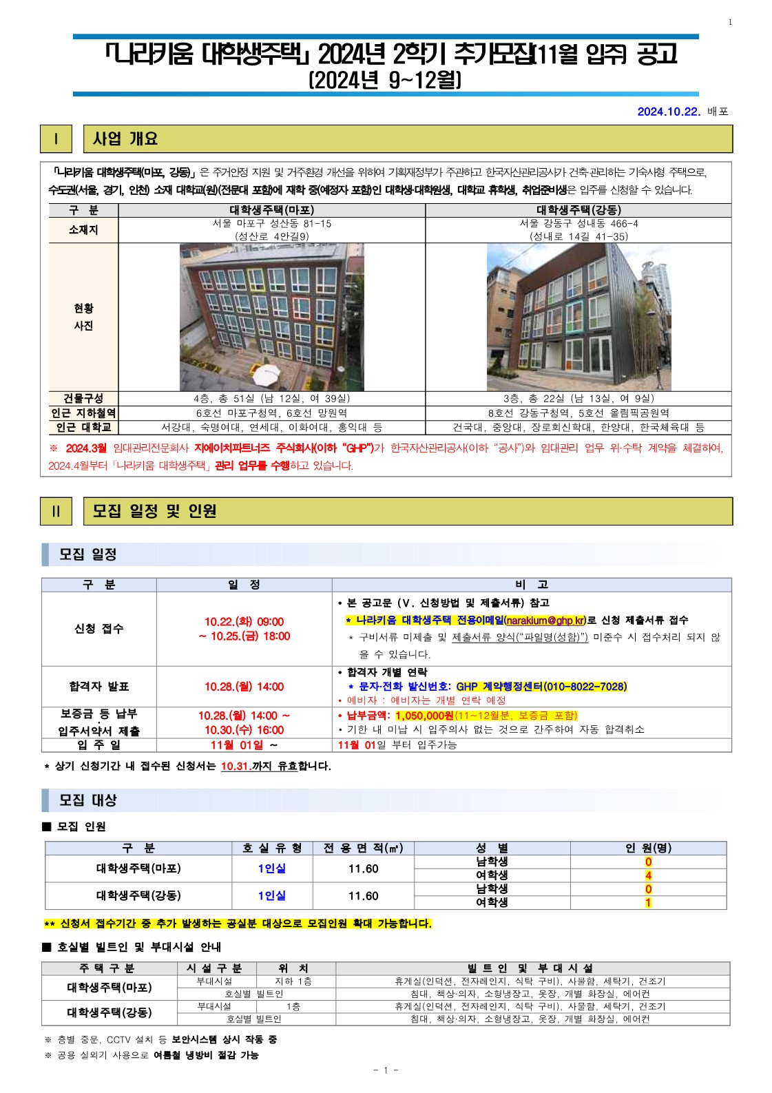 (241021)「나라키움 대학생주택」 2024년 2학기 추가모집 공고(안)_1