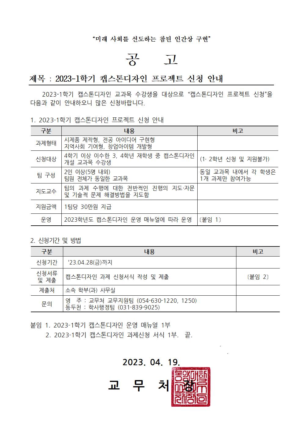 (공고문) 2023-1 캡스톤디자인 프로젝트 신청 안내001