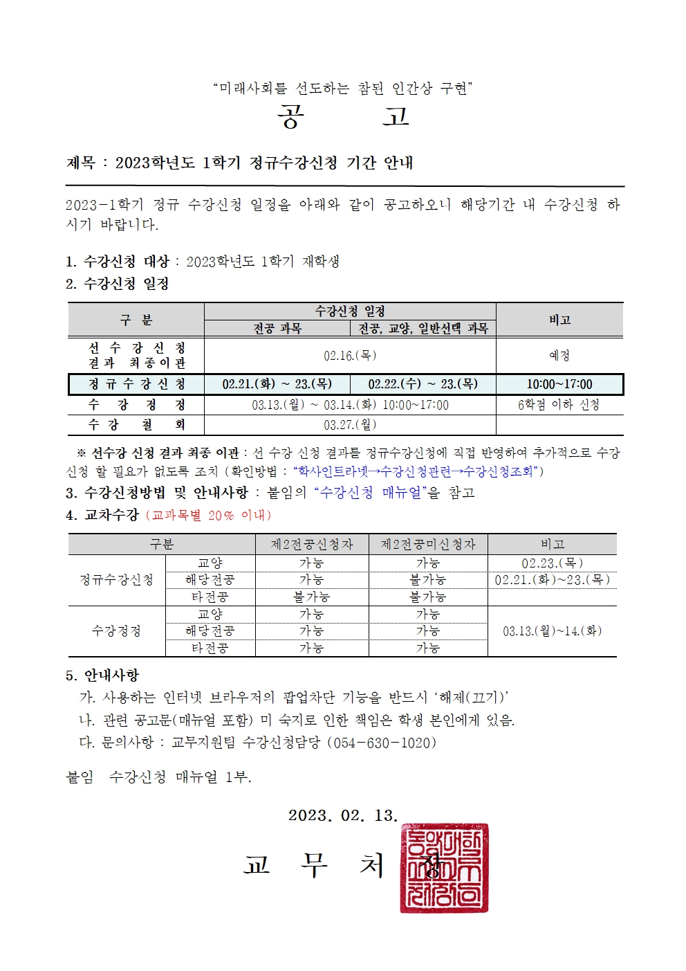 [공고] 2023학년도 1학기 정규 수강신청 안내001