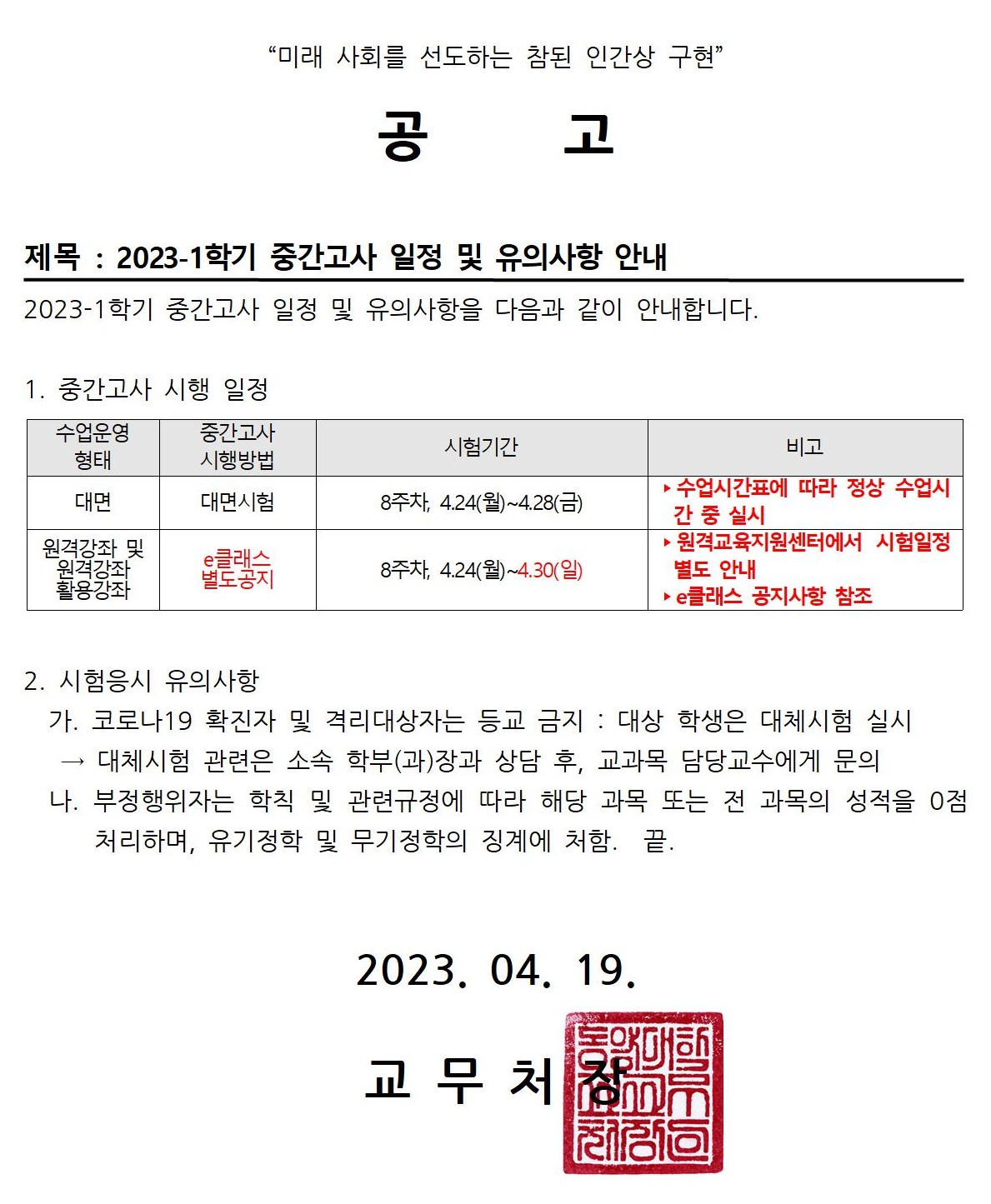 2023-1학기 중간고사 공고
