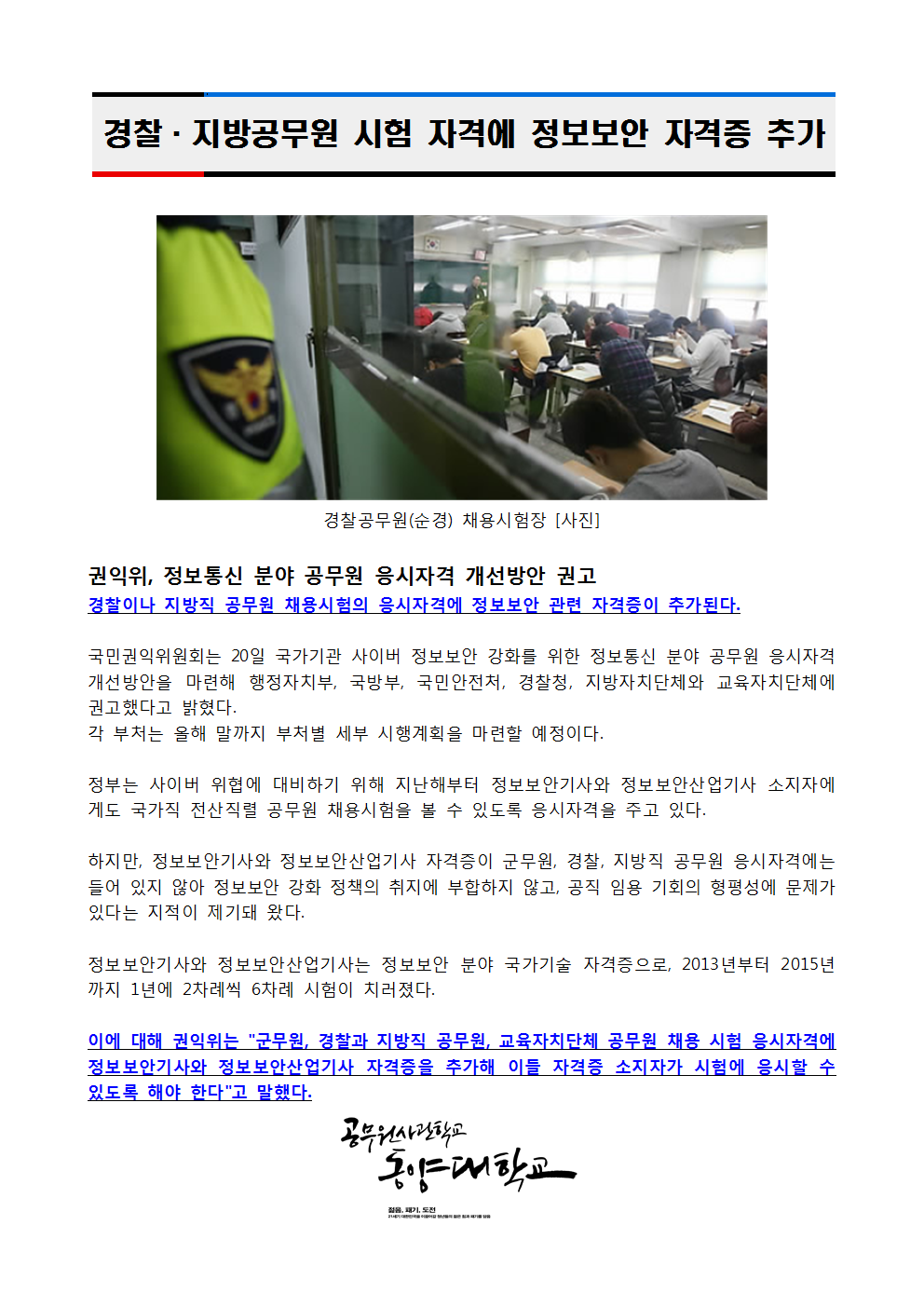 경찰·지방공무원 시험 자격에 정보보안 자격증 추가001
