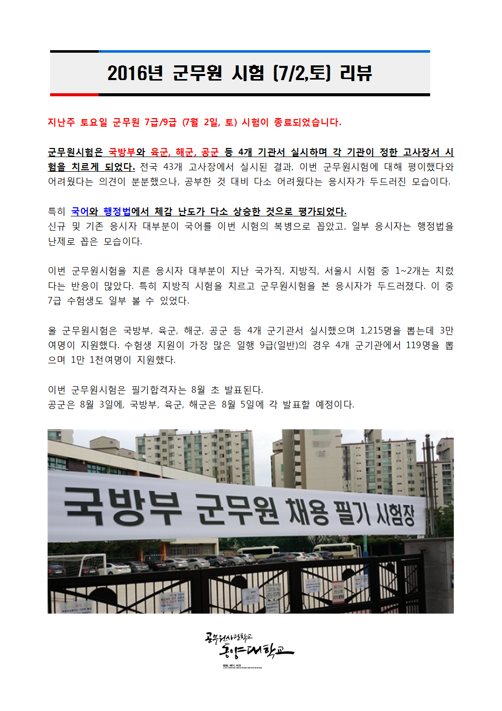 2016년 군무원 시험 (7월 2일,토) 리뷰001
