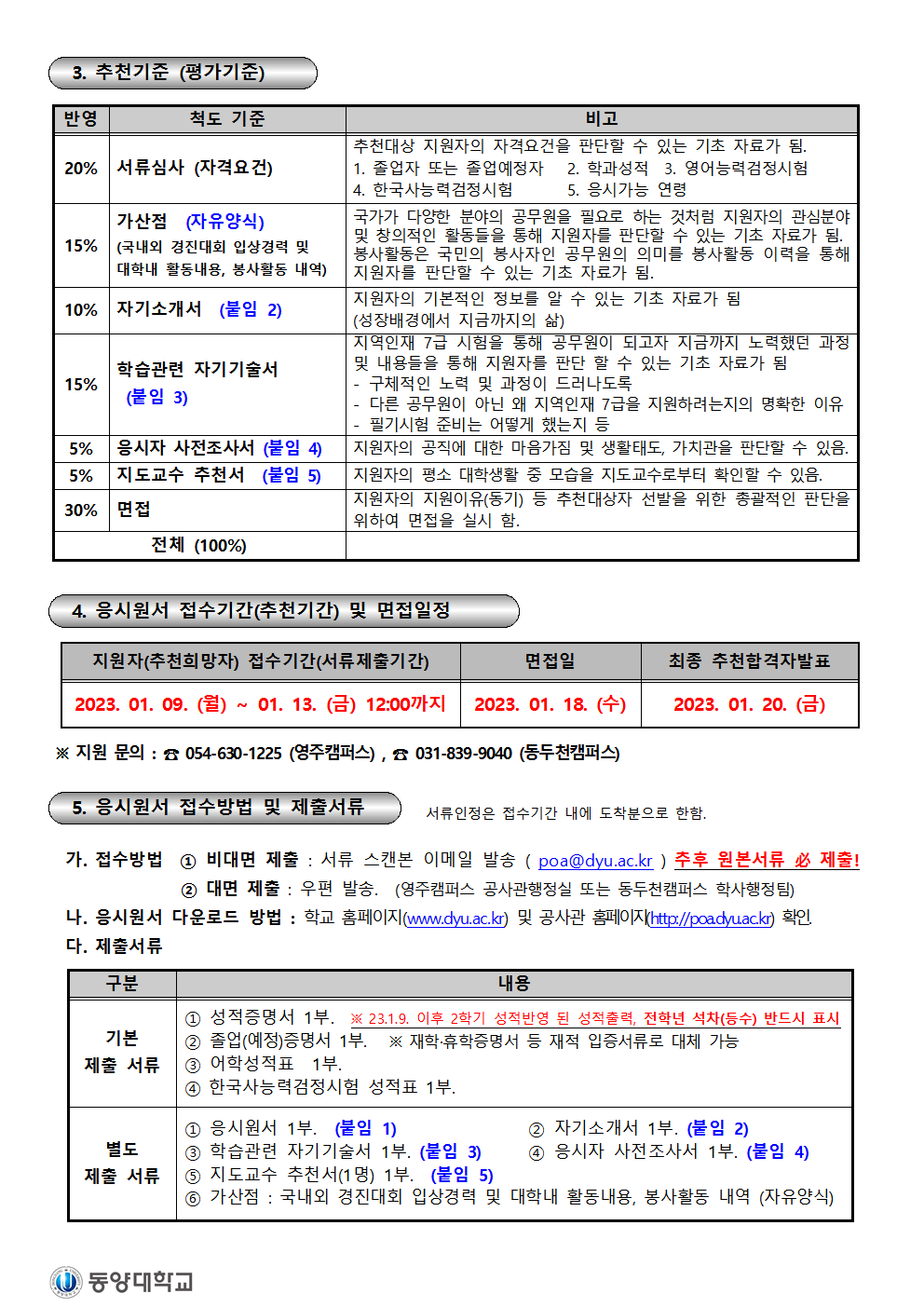 (공고문) 2023년도 동양대학교 지역인재 7급 수습직원 추천대상자 선발시험002