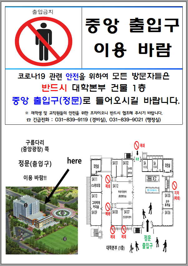 대학본부 건물 출입폐쇄 및 정문 출입구 이용안내