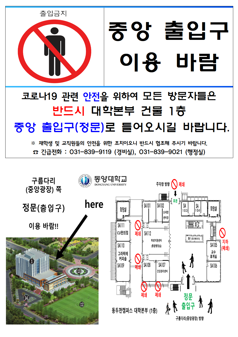 2020 0316 _ (문구) 코로나19 바이러스 관련 정문(출입구) 이용안내