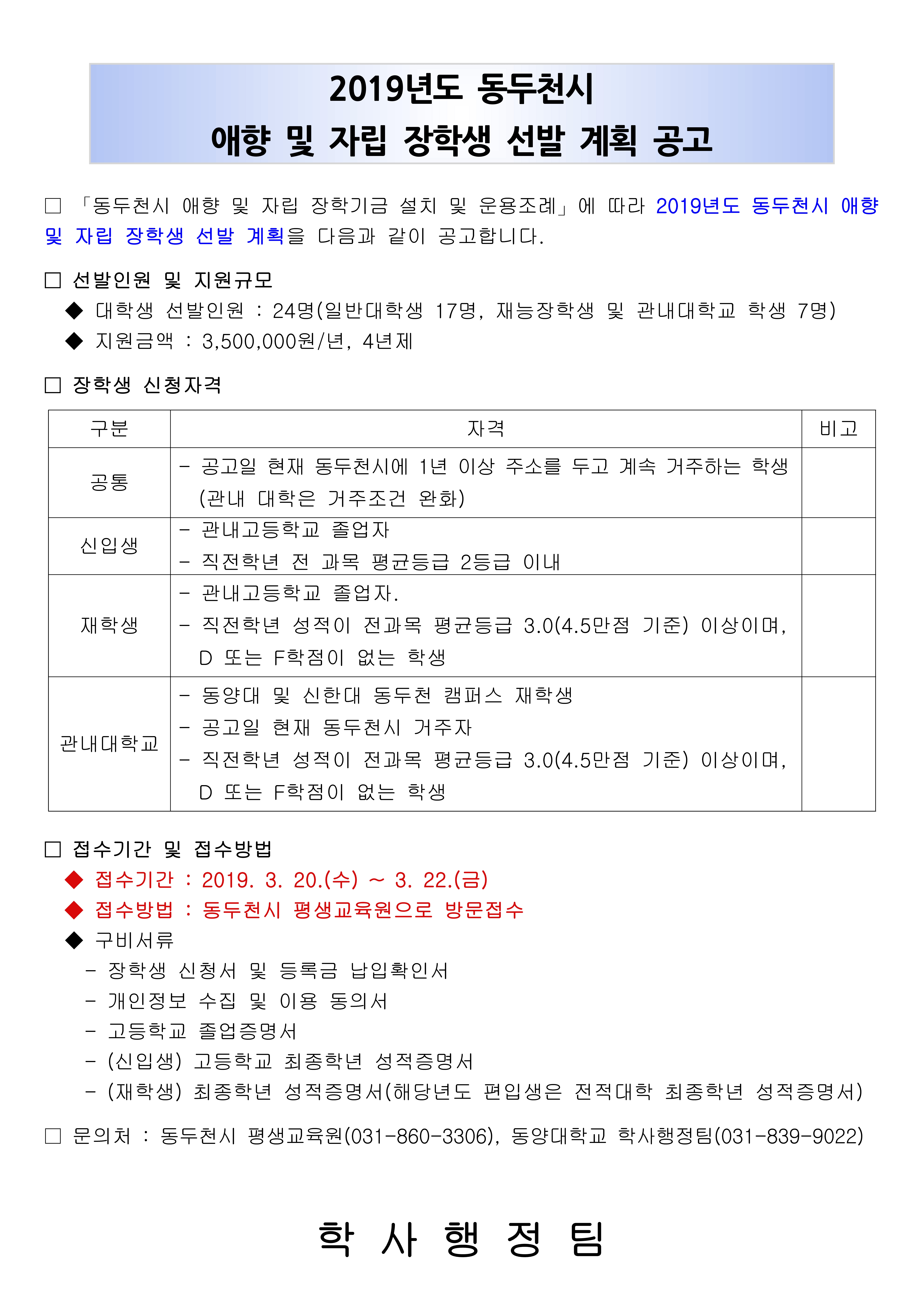 동두천시 장학생 선발계획 공고(표지)_1