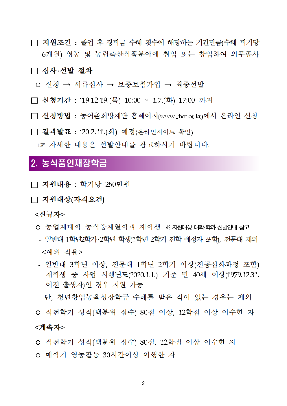 붙임1_2020년 1학기 농림축산식품부장학금 장학생 선발공고002
