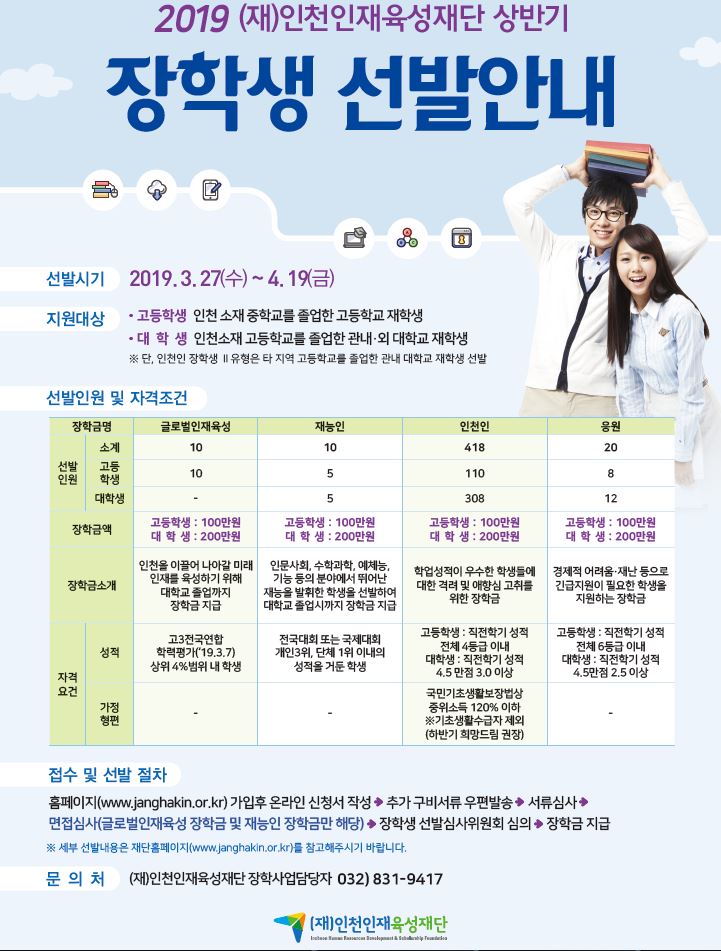 (재)인천인재육성재단 장학생 선발안내 포스터_1