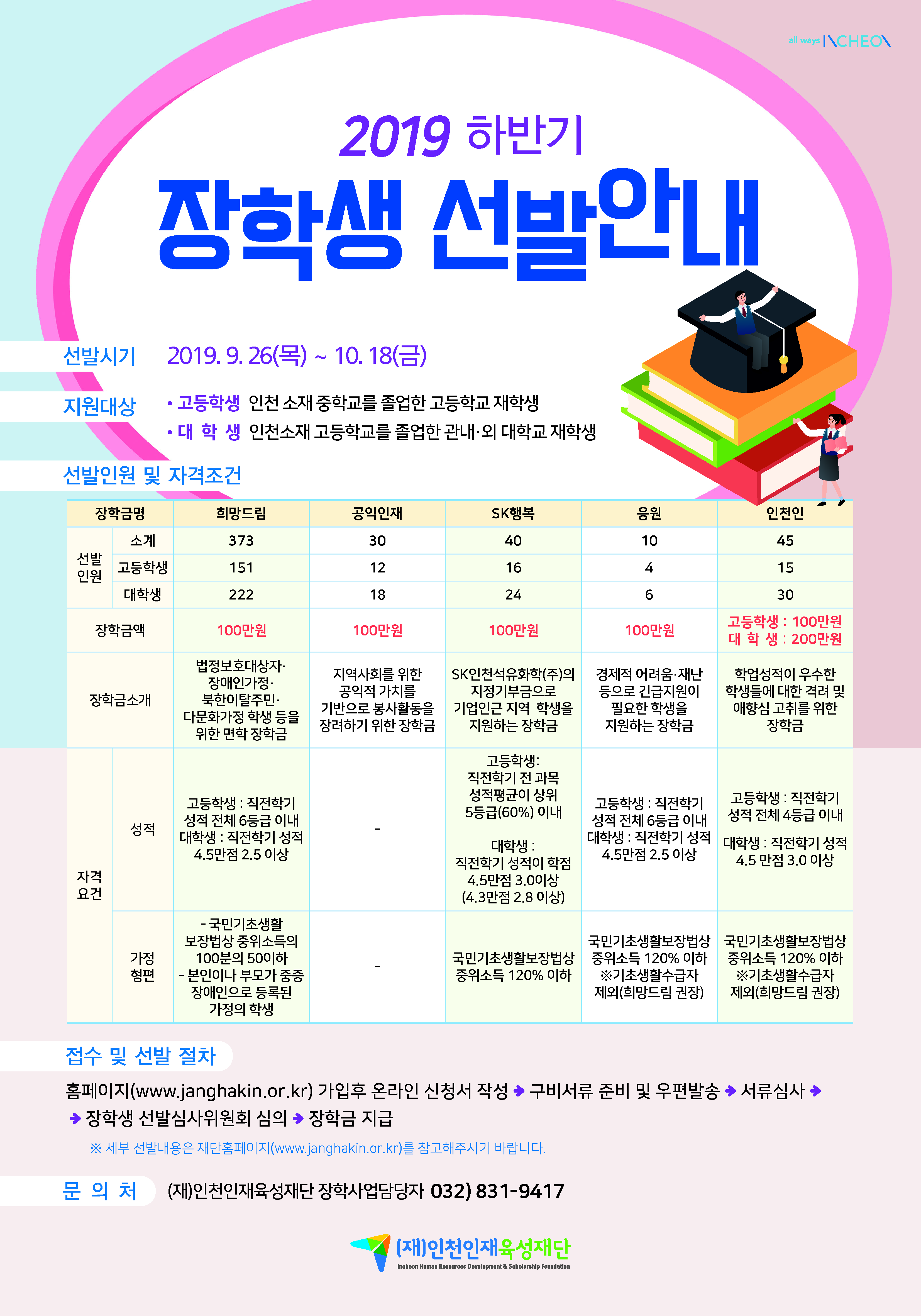 (재)인천인재육성재단 하반기 장학생 선발 모집포스터 _1