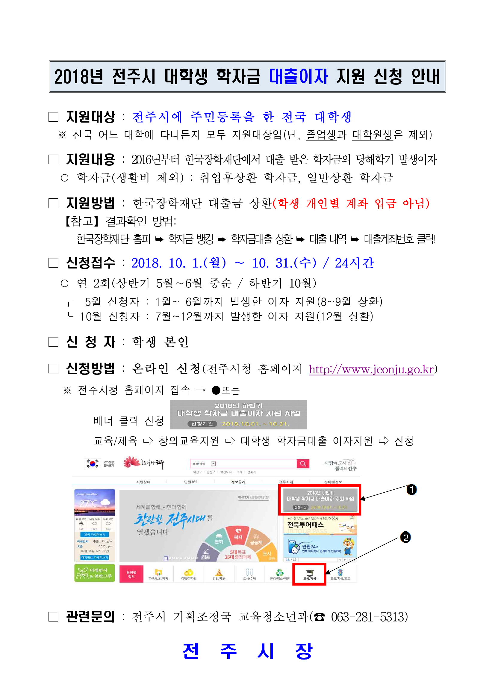 전주시 대학생 학자금 대출이자 지원사업 안내문_1