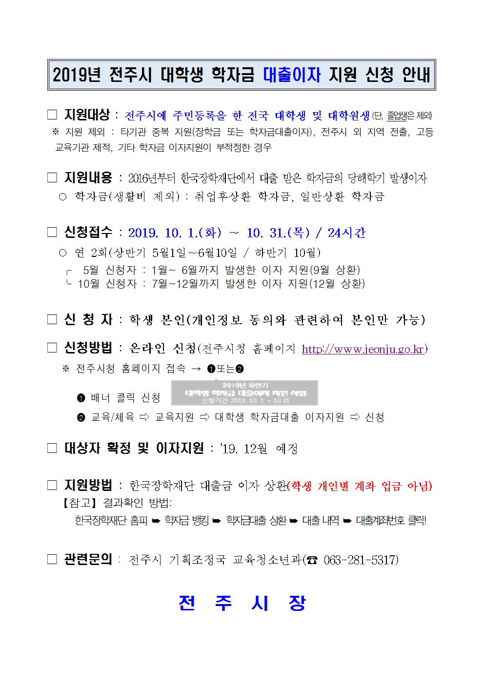 전주시 이자지원 하반기 사업 안내문001