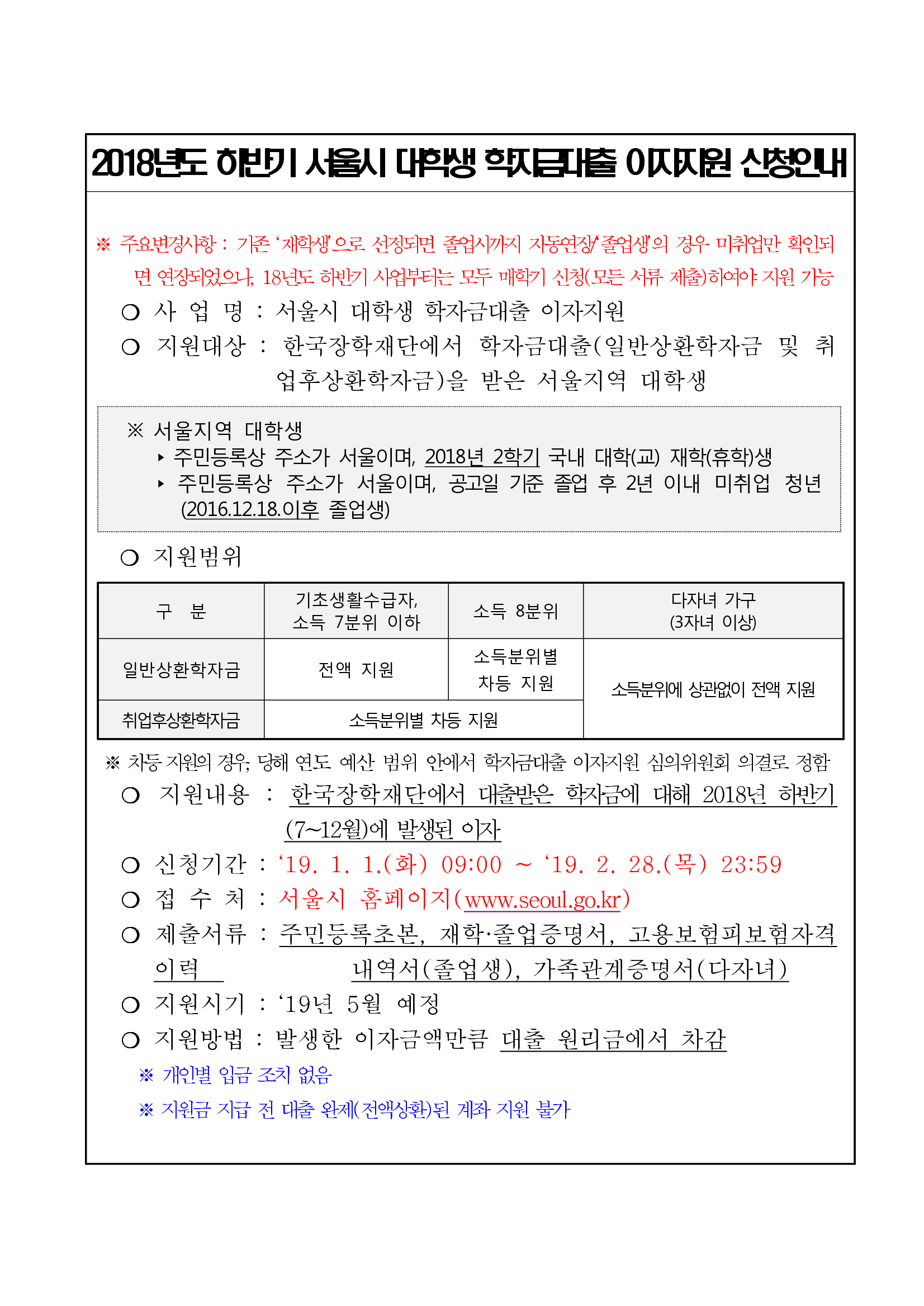 18-2 서울시 대학생 학자금대출 이자지원 신청안내문_1
