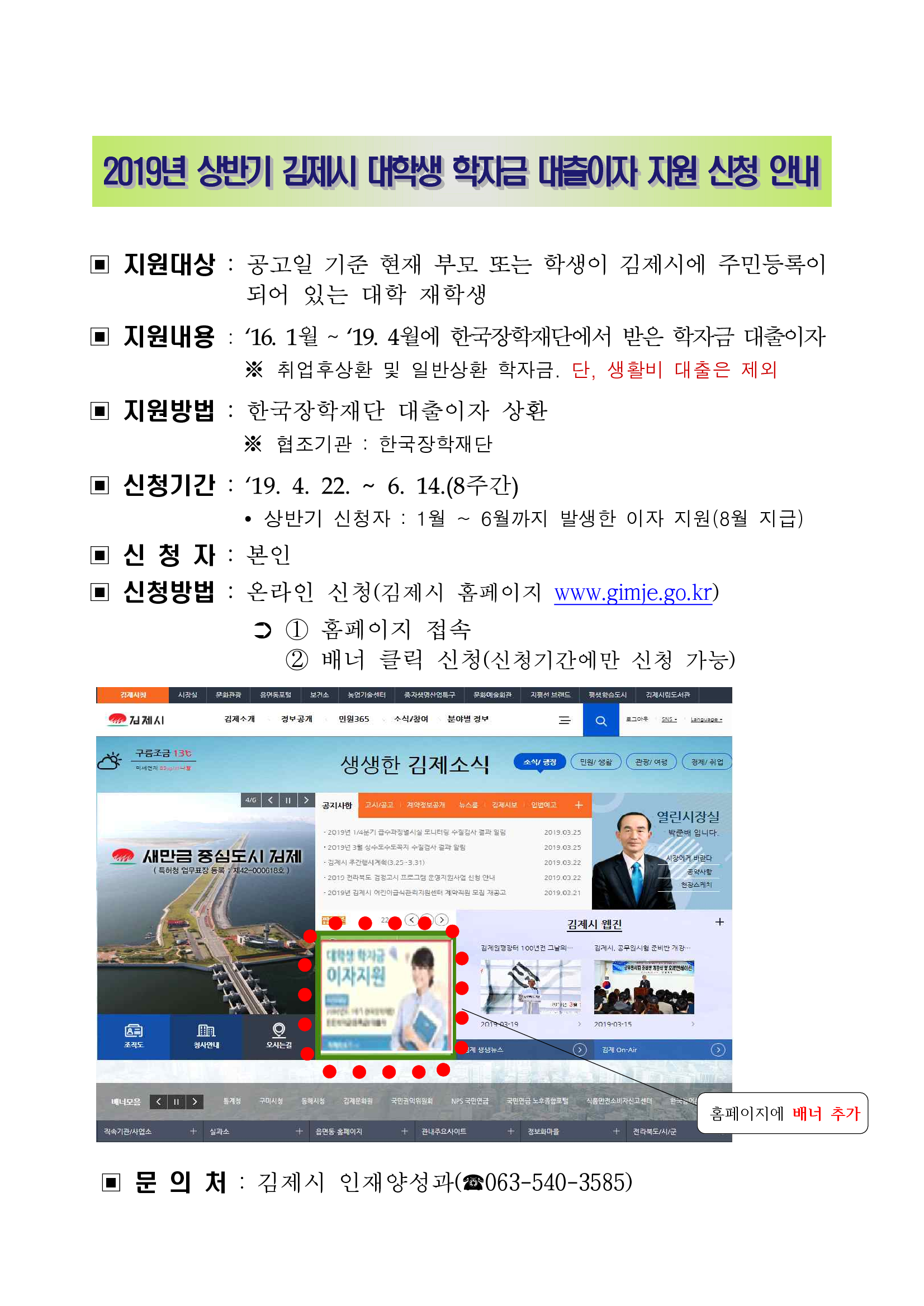 2019년 상반기 김제시 대학생 학자금 대출이자 지원 신청 안내_1