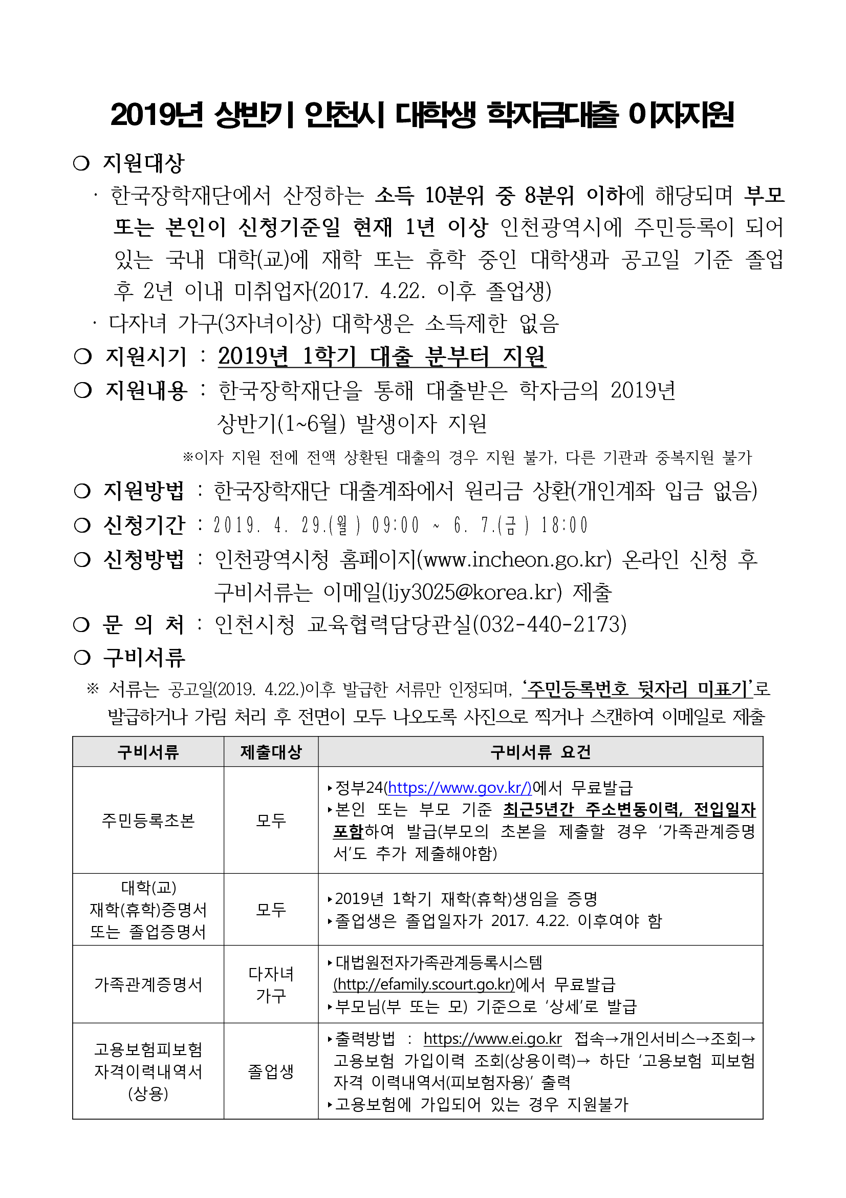 2019년 상반기 학자금대출 이자지원 안내문_1