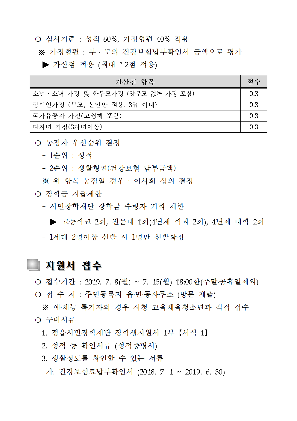 2019년 정읍시민장학재단 장학생 선발 공고문003