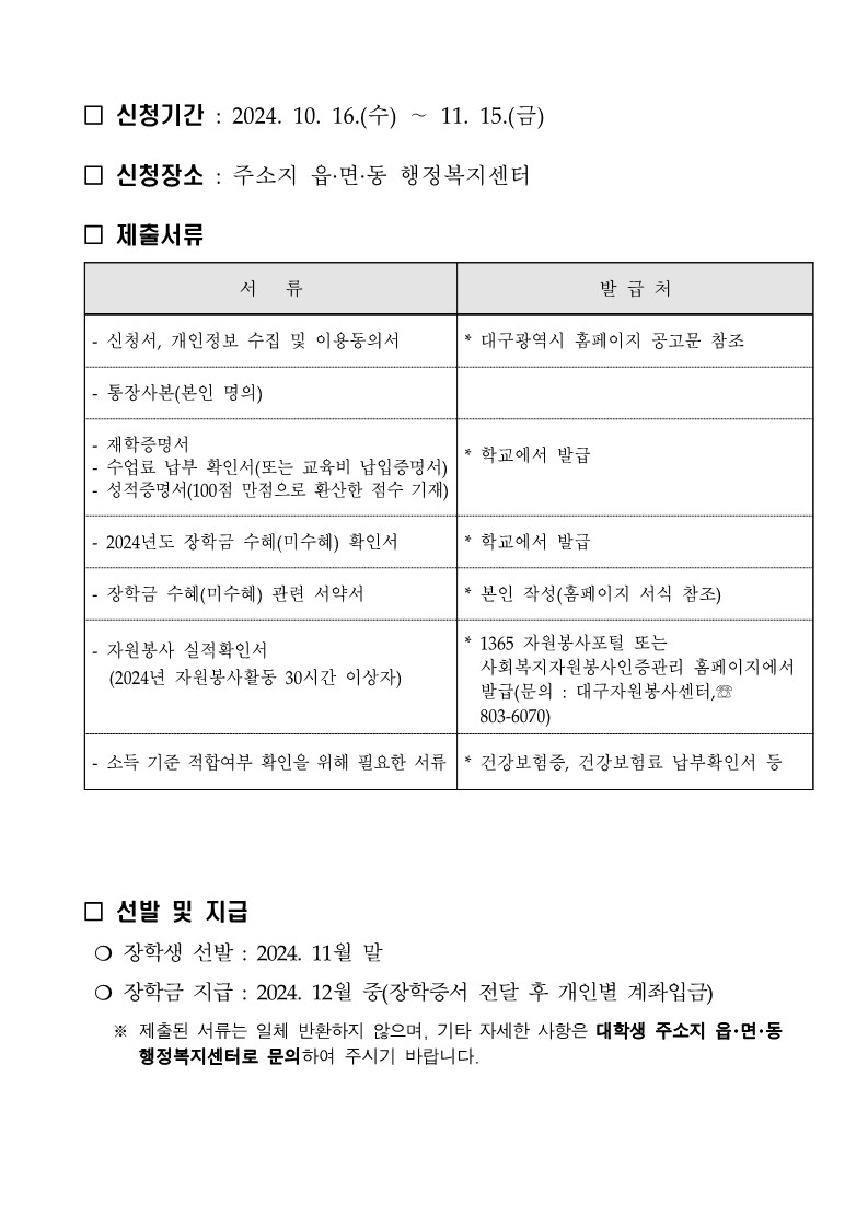 2024년 대구광역시 저소득주민 장학생 선발계획 공고문_3