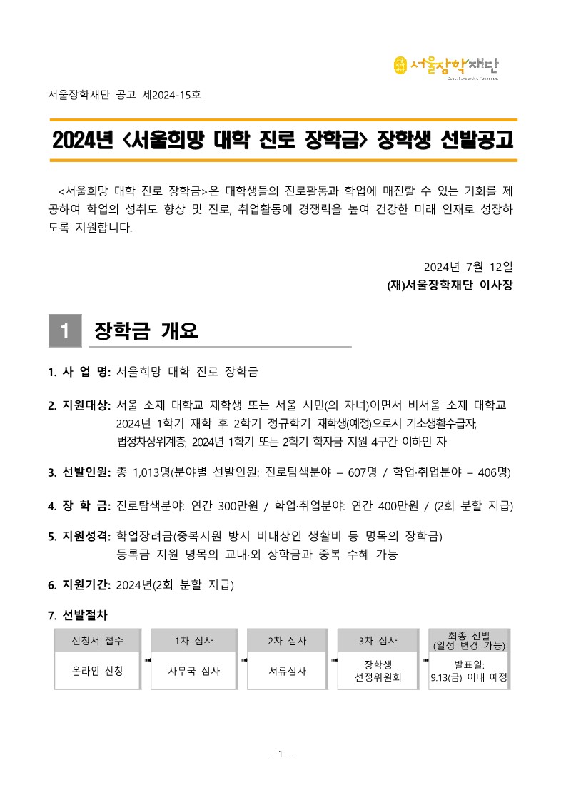 2024년 서울희망대학진로 장학금 선발공고문_1