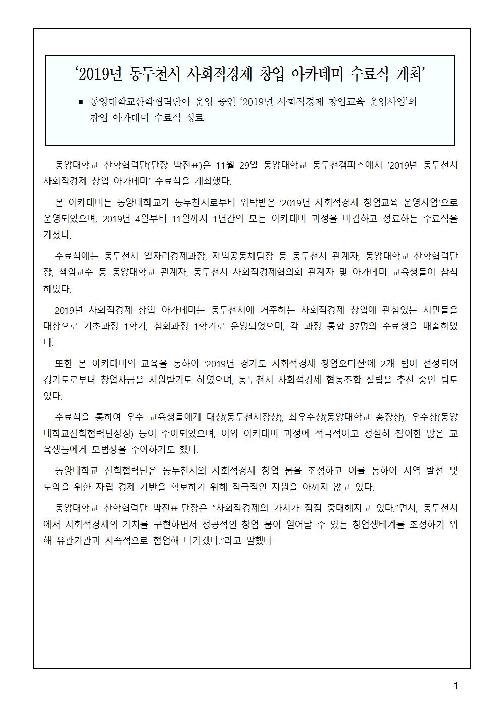 [생생라이브] 2019년 동두천시 사회적경제 창업아카데미 수료식 개최001