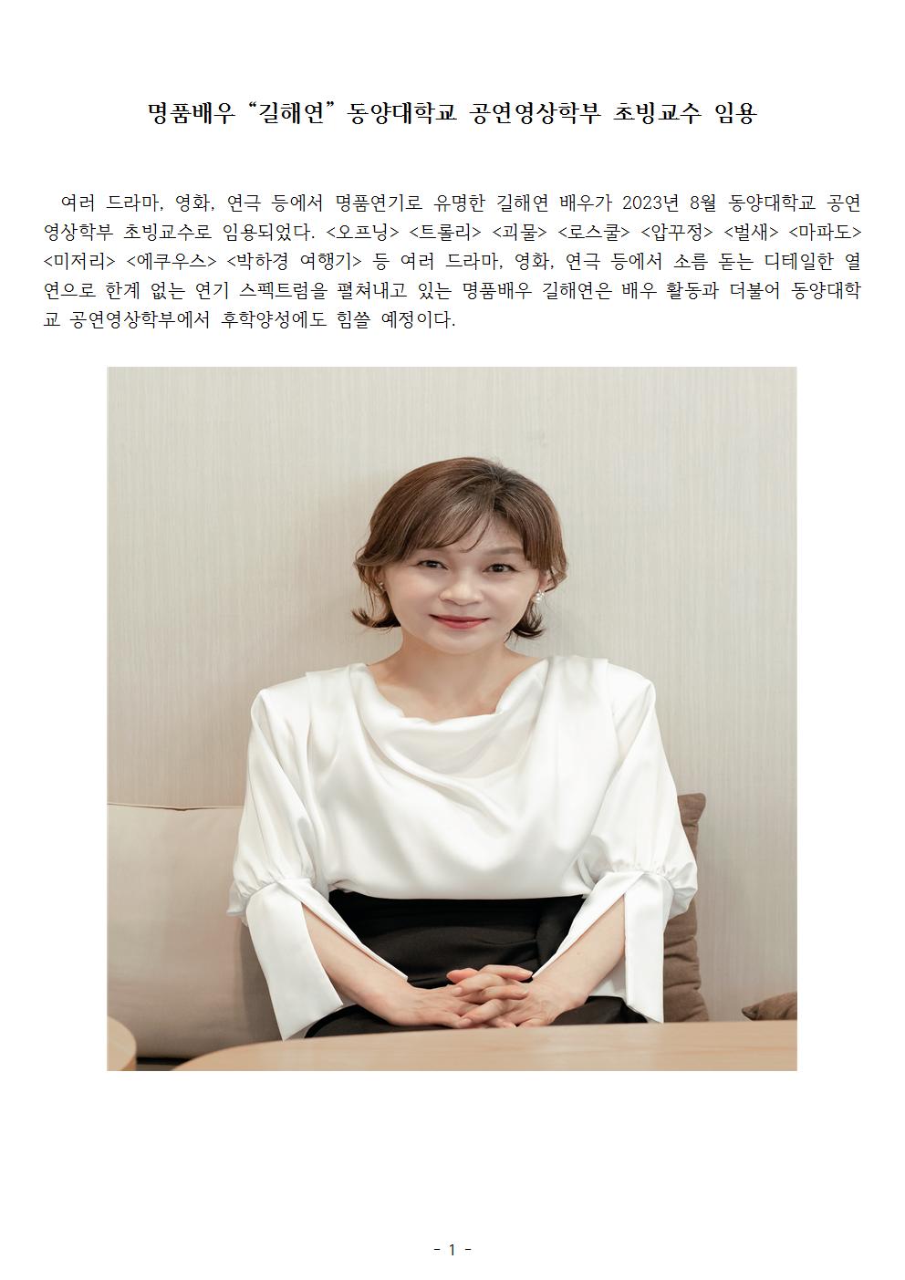 홍보자료2_길해연_동양대공연영상학부초빙교수임용_20230810001