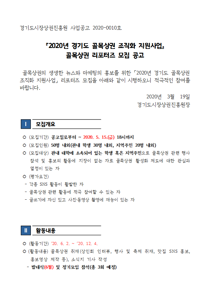 [붙임1] 2020년 골목상권 리포터즈 모집 공고문1