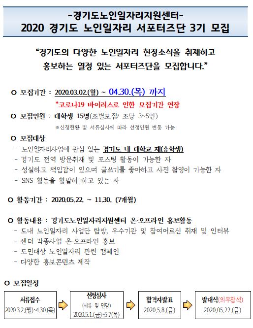 0. 2020년 경기도노인일자리 대학생 서포터즈단 3기 모집
