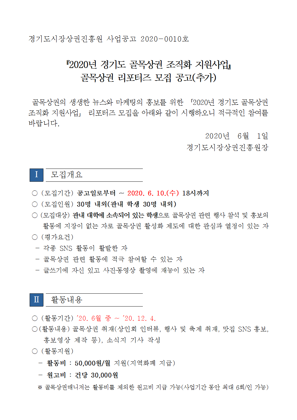 2020년 골목상권 리포터즈 추가모집 공고문 (1)001