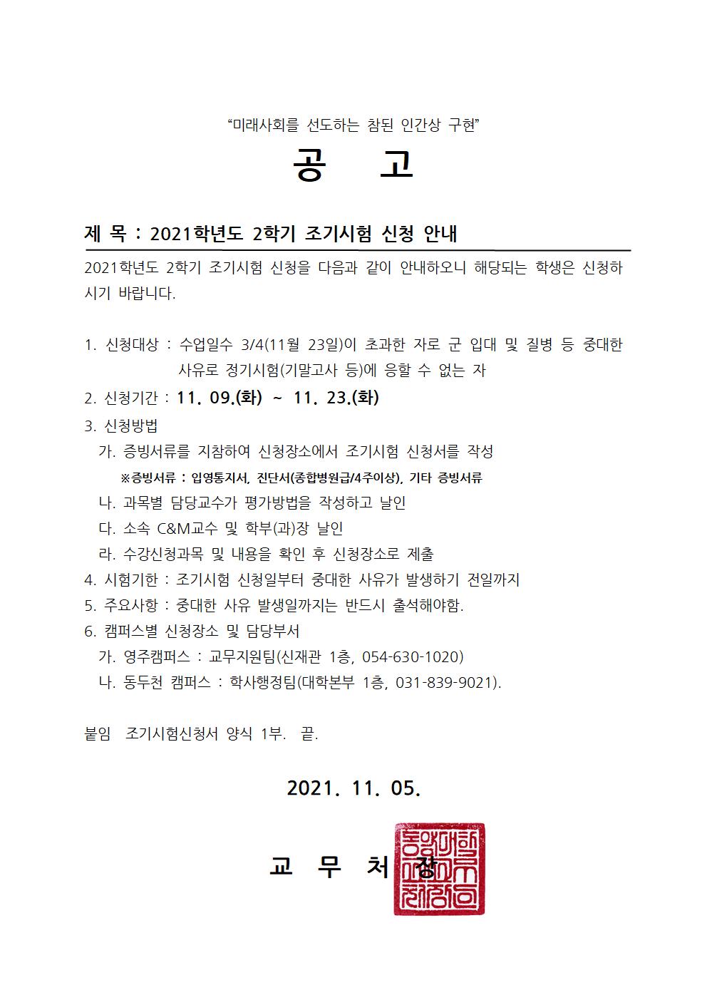 공고문_2021학년도 1학기 조기시험 신청 안내001001