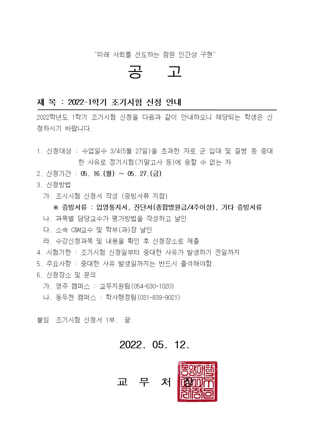 공고문_2022학년도 1학기 조기시험 신청 안내001