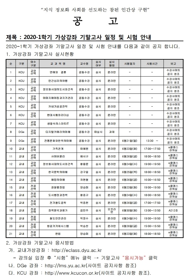 [공고] 2020-1학기 가상강좌 기말고사 일정 및 시험 안내.pdf_page_1