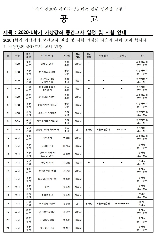 [공고] 2020-1학기 가상강좌 중간고사 일정 및 시험 안내.pdf_page_1