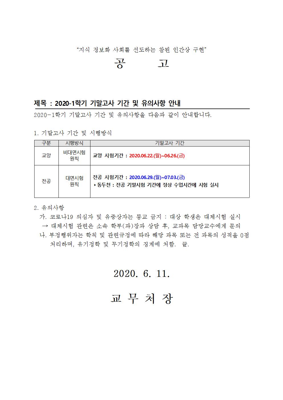 [공고] 20200610_2020-1학기 기말고사 관련 안내001