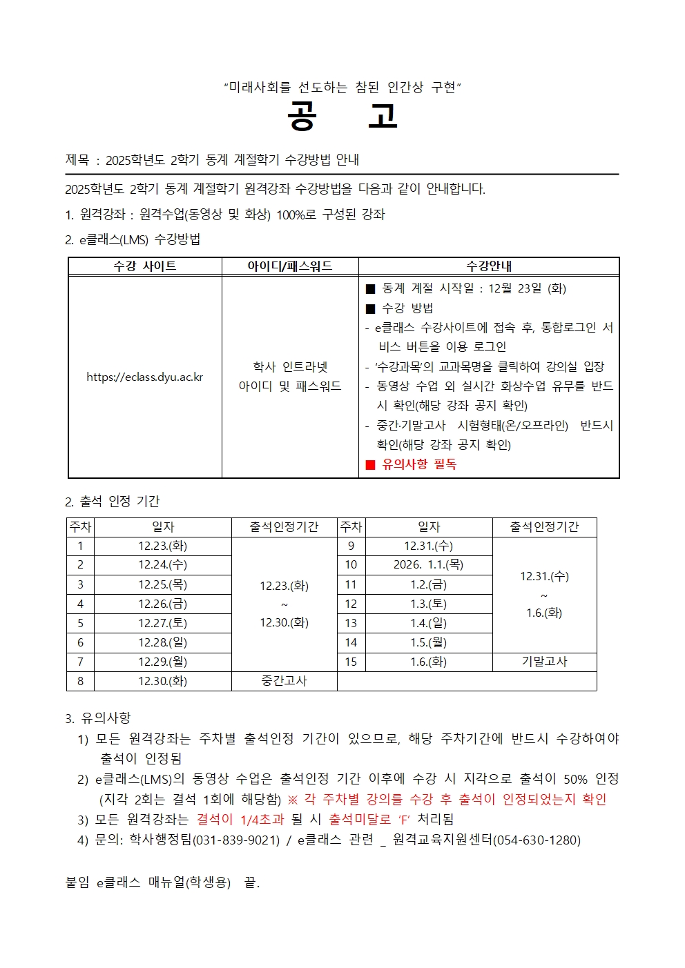 [공고]2025학년도 2학기 동계계절학기 수강안내001