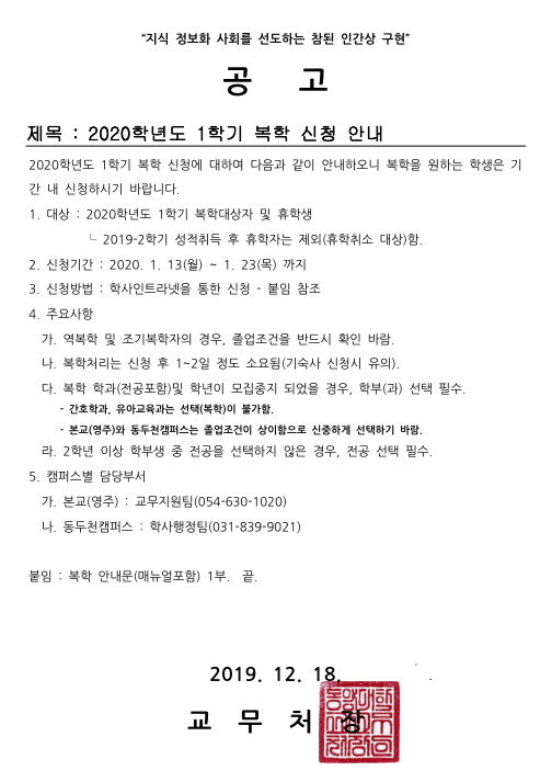 연락처 : 031-839-9114   위치 : 우) 11307 경기도 동두천시 평화로 2741 동양대학교 동두천캠퍼스