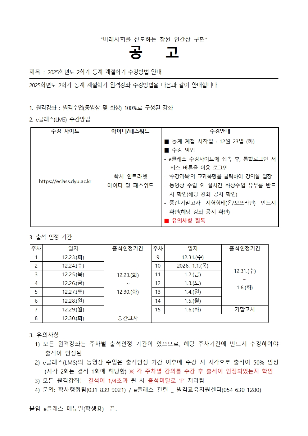 붙임 1. [공고]2025학년도 2학기 원격강좌 수강방법 및 학사일정 안내001