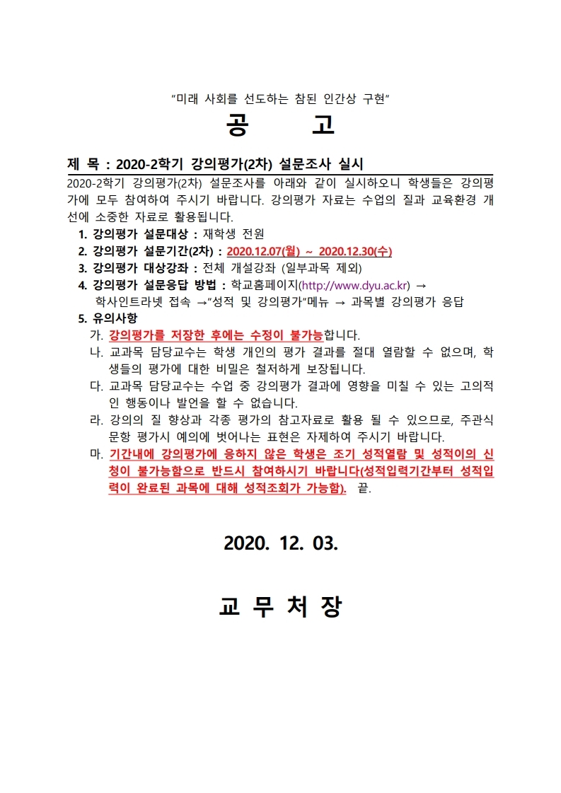 [붙임4] 2020-2학기 강의평가(2차) 설문조사 실시_공고
