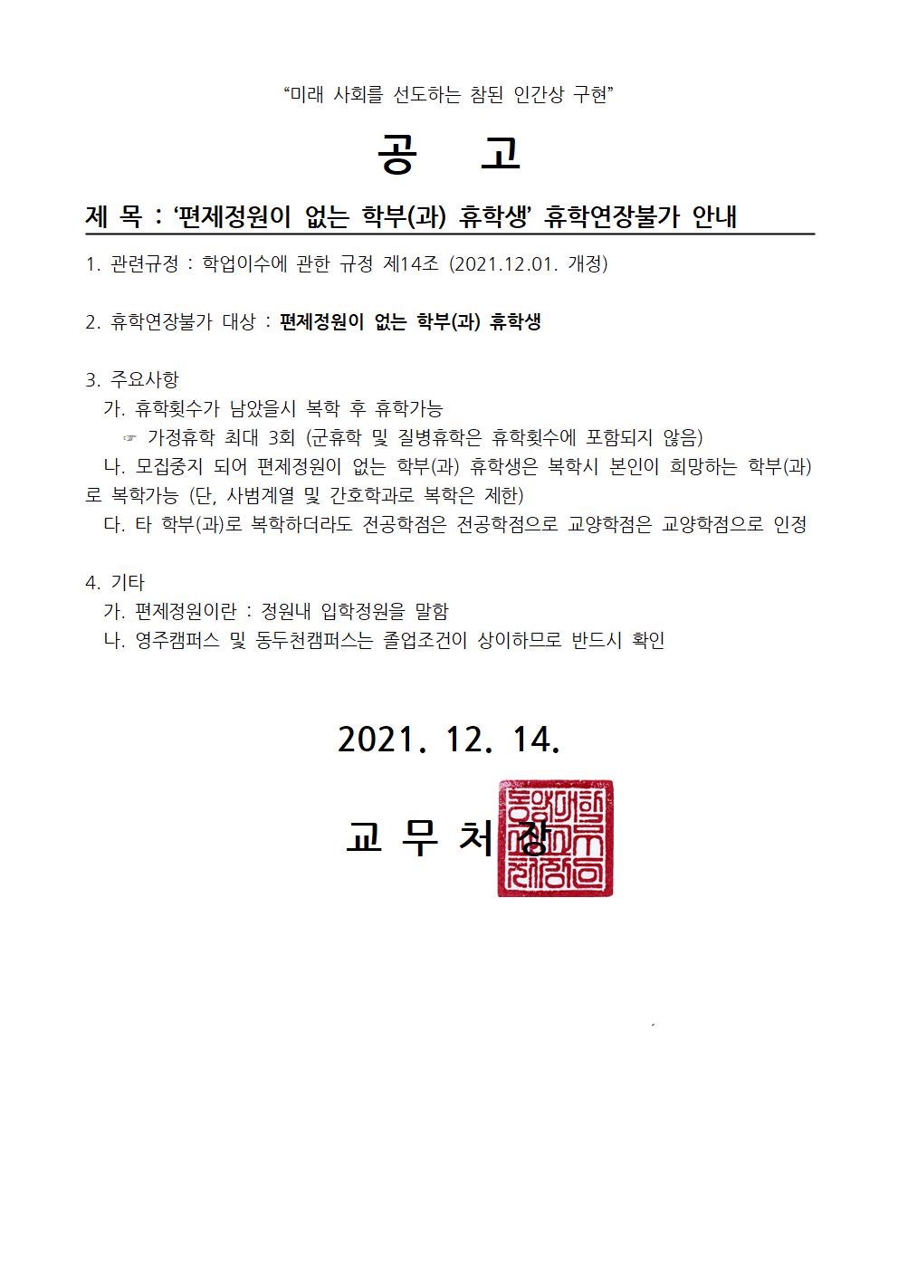 붙임5_공고_편제정원 없는 학부(과) 휴학연장불가001001