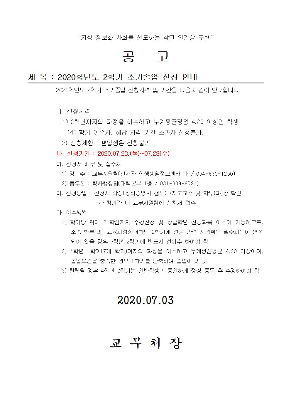 (20.07.03)공고문_2020-2학기 조기졸업 신청 안내001