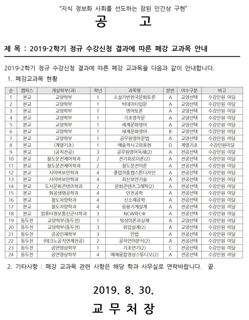 2019-2 폐강강좌 안내(최종)